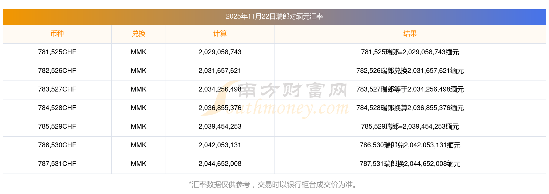 瑞郎換緬元實(shí)時匯率查詢表 2025/11/22