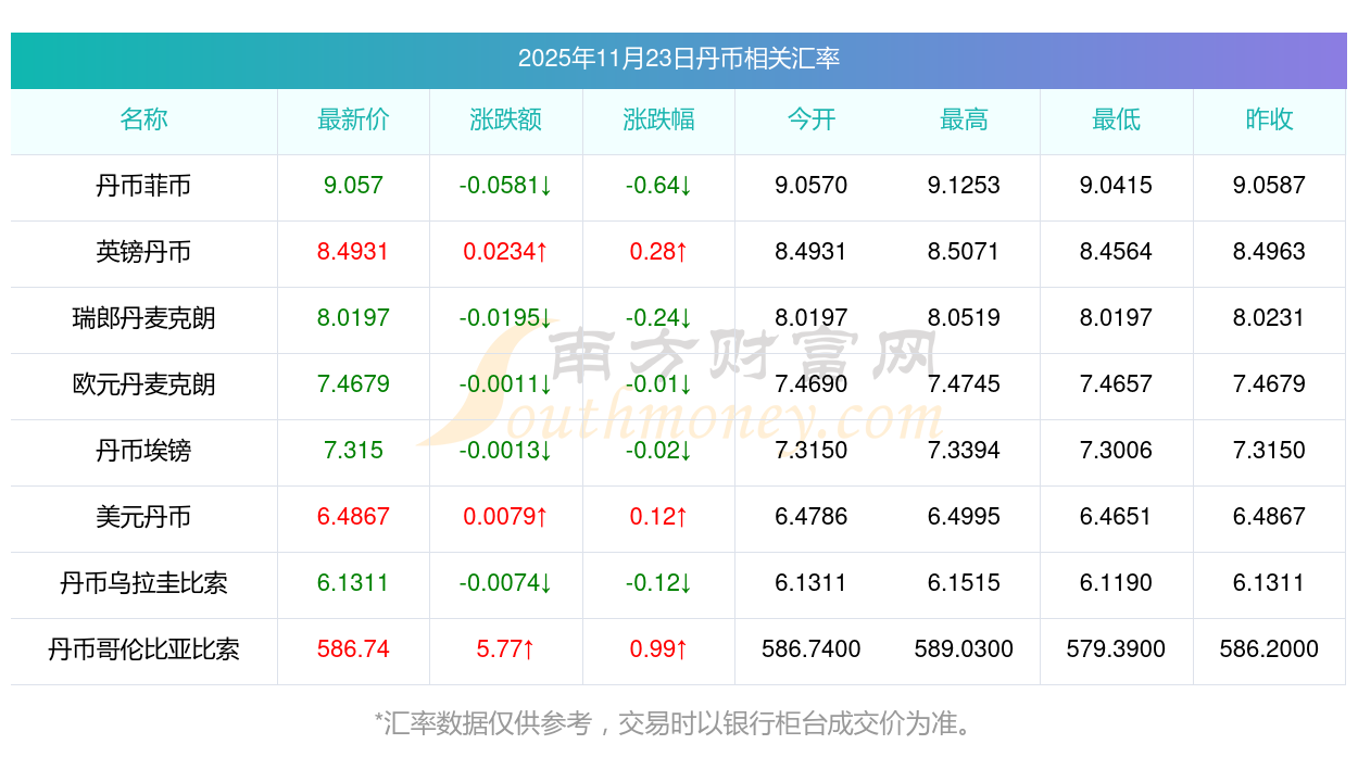 根據(jù)2025年11月23日匯率,丹幣兌換南特匯率最新2.680100,今開(kāi)2.6801,昨收2.6787,最高2.6896,最低2.6567。