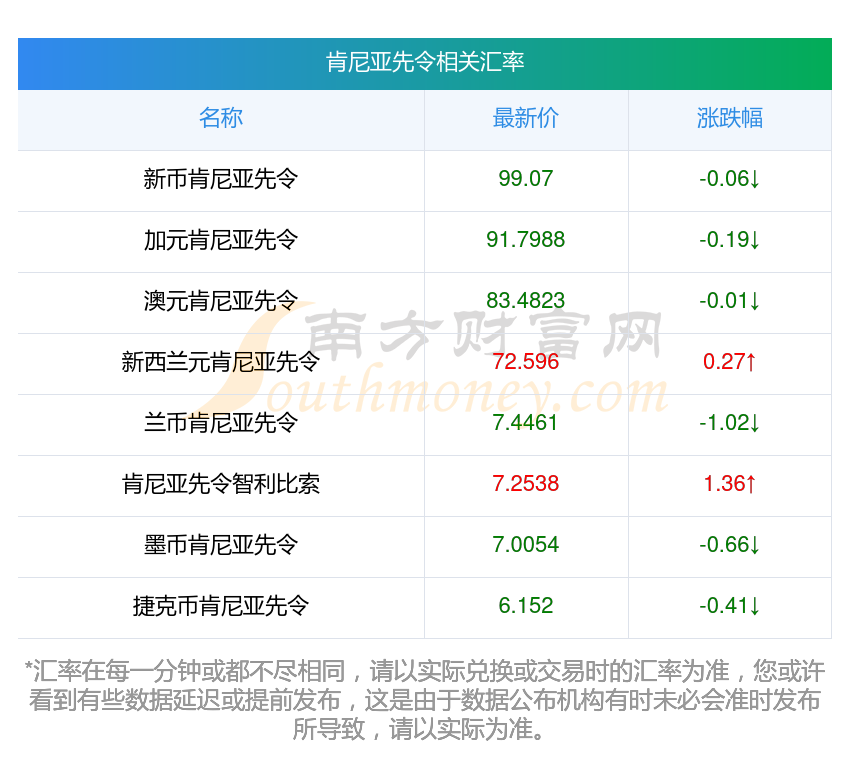 南方財(cái)富網(wǎng)為您提供肯尼亞先令對(duì)哥倫比亞比索匯率最新價(jià)格詳情。