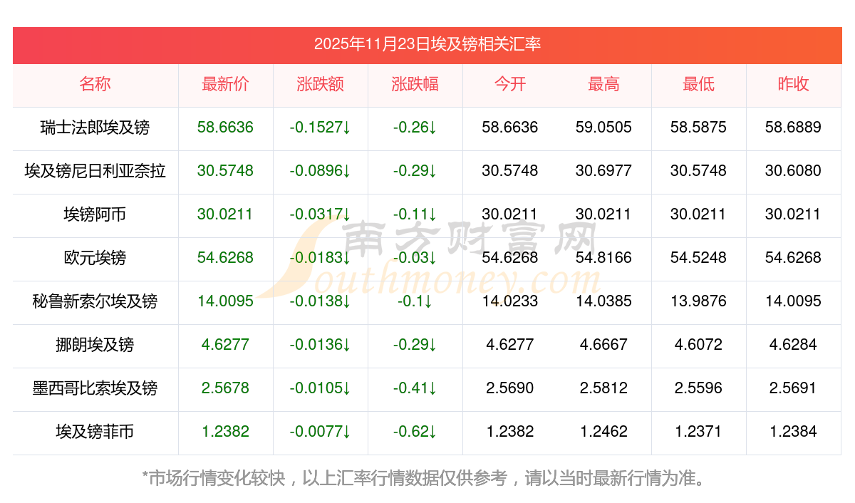 2025年11月23日埃及鎊相關(guān)匯率查詢
