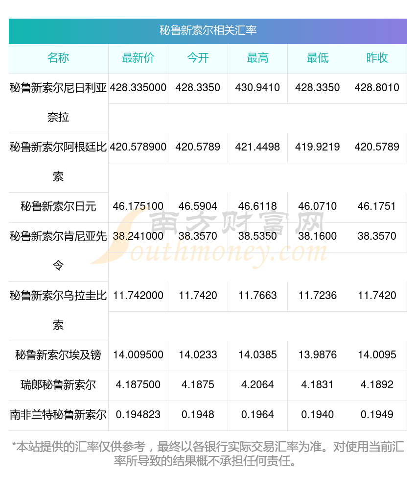 2025年11月23日秘魯新索爾相關(guān)匯率查詢