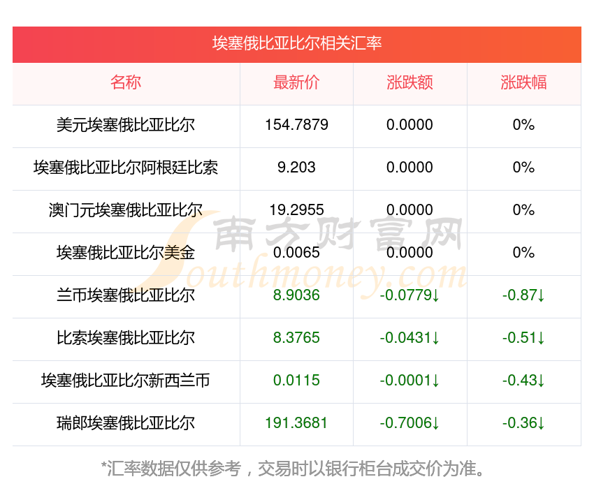南方財富網(wǎng)為您提供埃塞俄比亞比爾對越南幣匯率最新價格詳情。