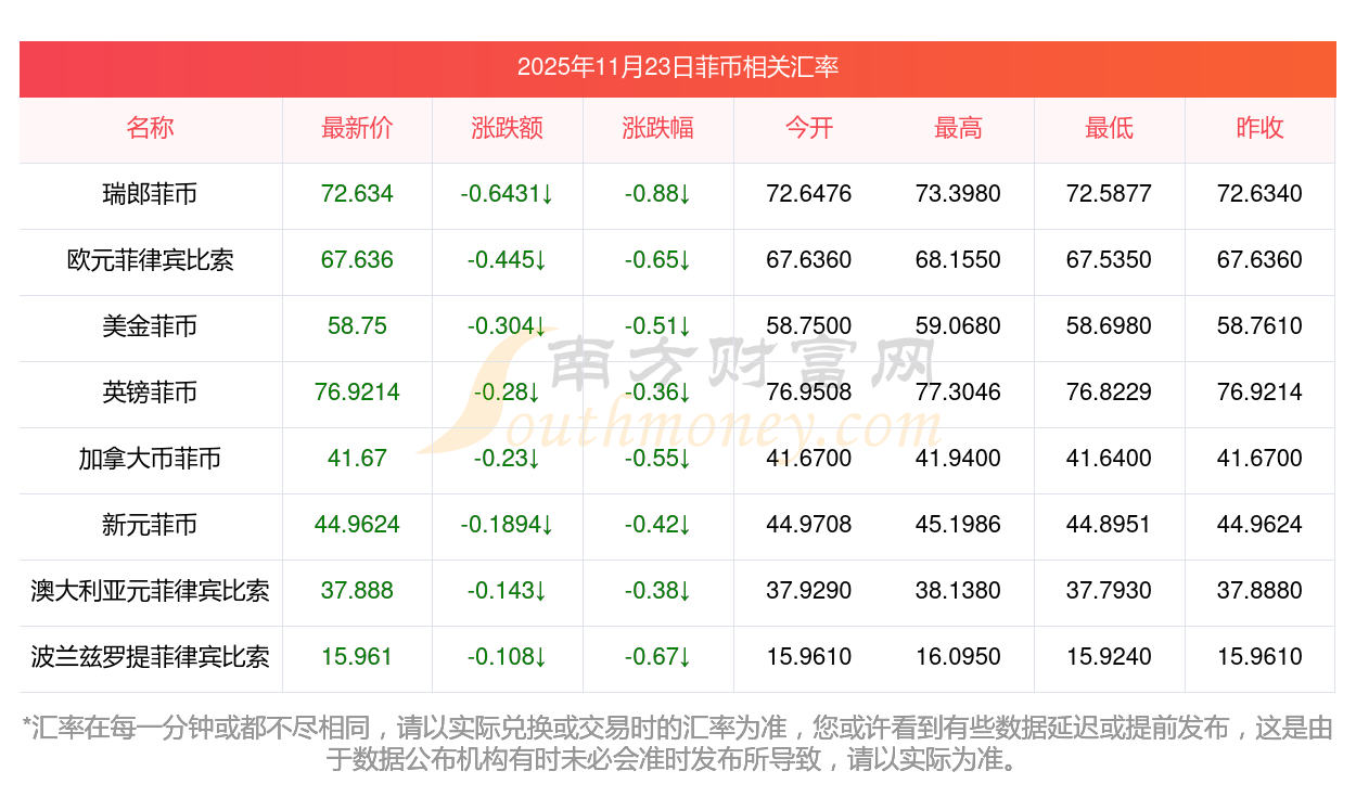 根據(jù)2025年11月23日匯率計算,PHP兌換CAD匯率最新價0.024000:今開價0.0240,昨收價0.0240,最高價0.0240,最低價0.0238。