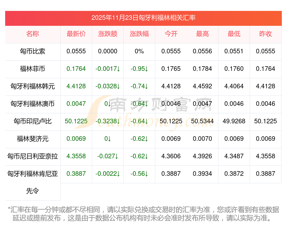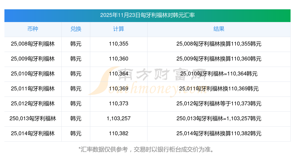 今天匈牙利福林對韓元匯率查詢_不同貨幣轉(zhuǎn)換2025-11-23
