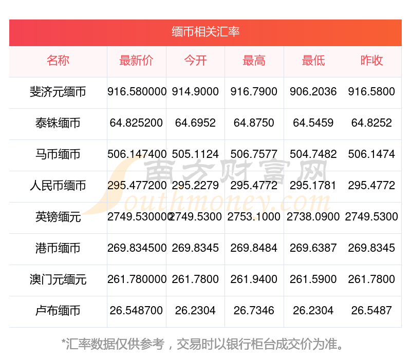 匯率在每一分鐘或都不盡相同,請以實際兌換或交易時的匯率為準,您或許看到有些數(shù)據(jù)延遲或提前發(fā)布,這是由于數(shù)據(jù)公布機構(gòu)有時未必會準時發(fā)布所導致,請以實際為準。