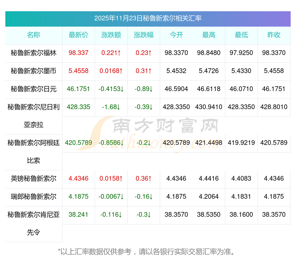 2025年11月23日秘魯新索爾相關(guān)匯率查詢