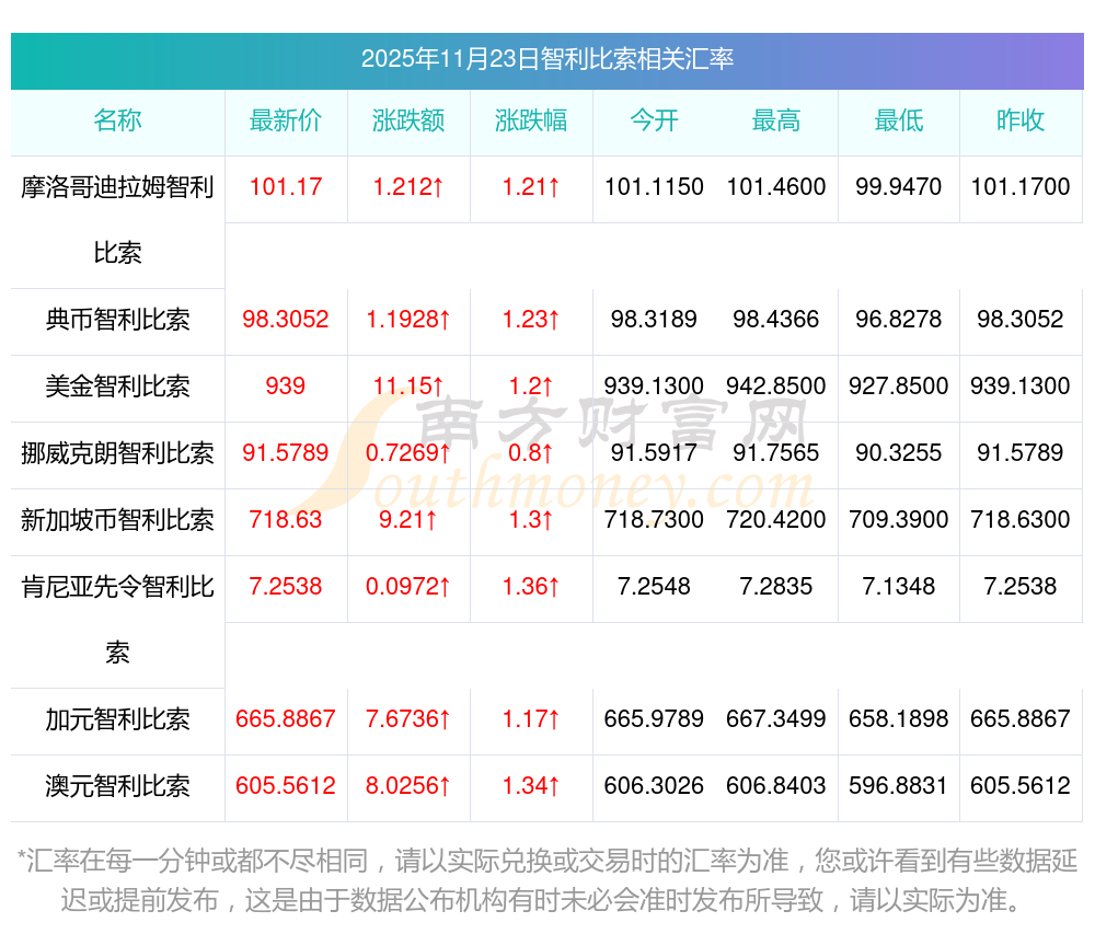 39智利比索兌換港幣結(jié)匯行情 今天智利比索匯率報價查詢11-23