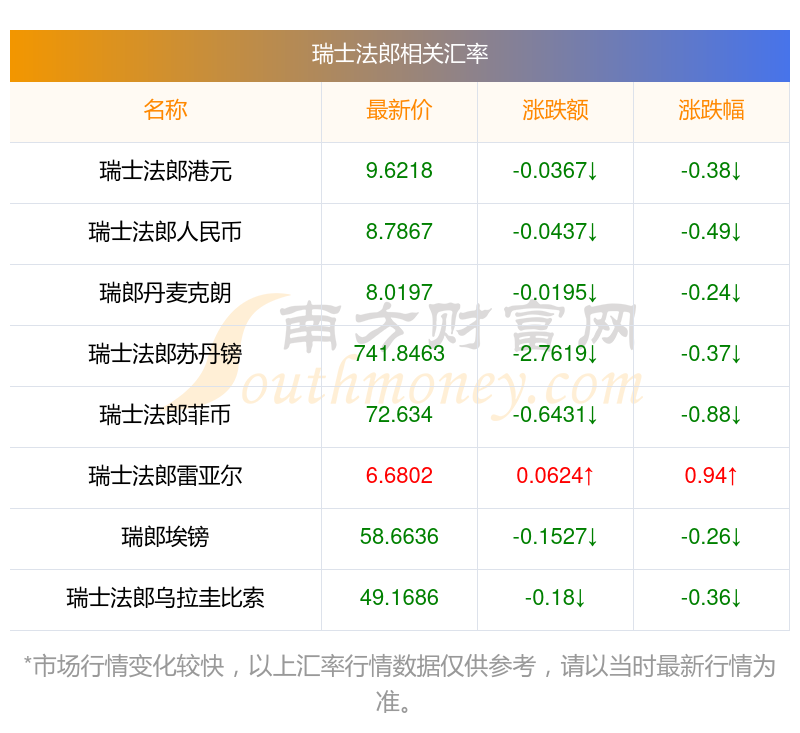 2025年11月23日瑞士法郎相關(guān)匯率查詢