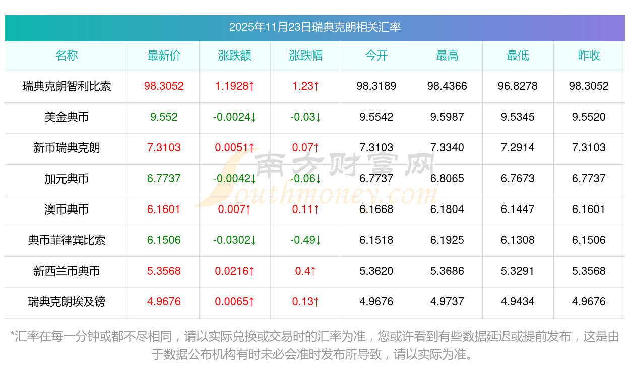 2025年11月23日瑞典克朗相關(guān)匯率查詢