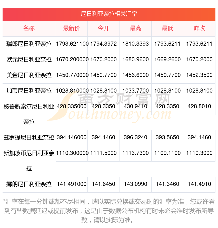 2025年11月23日尼日利亞奈拉相關(guān)匯率查詢
