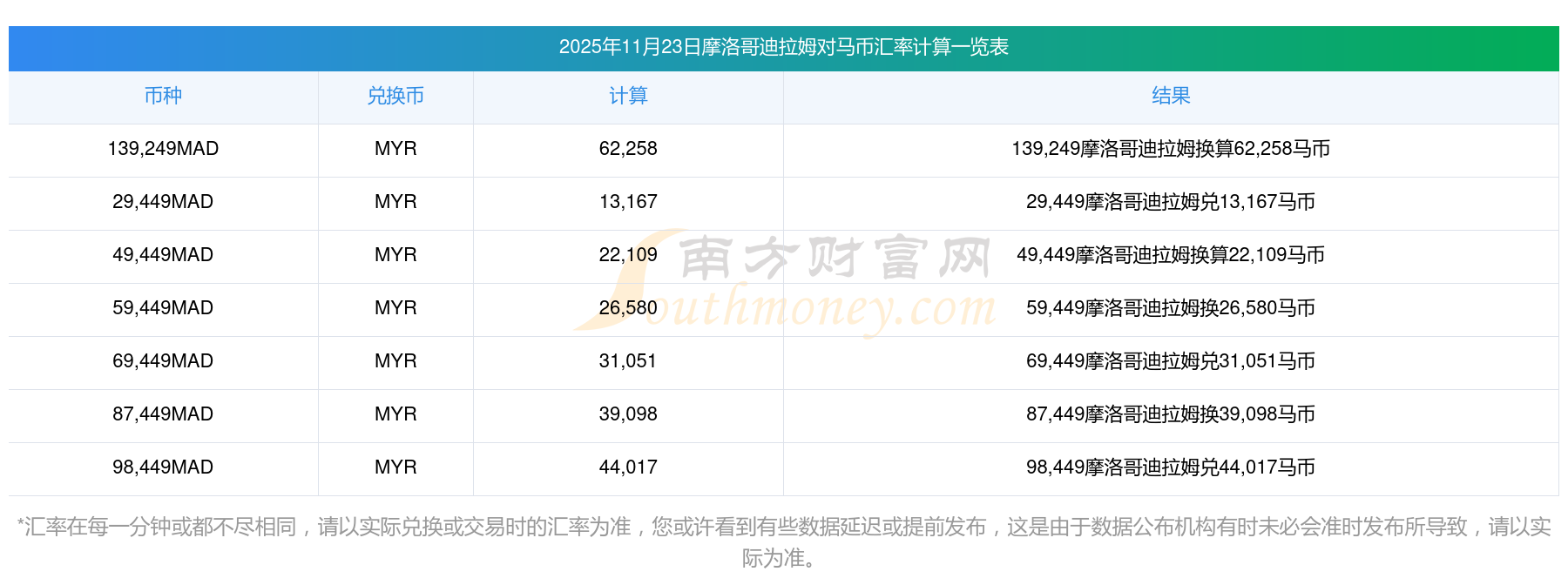 南方財富網(wǎng)為您提供摩洛哥迪拉姆對馬幣匯率最新價格詳情。