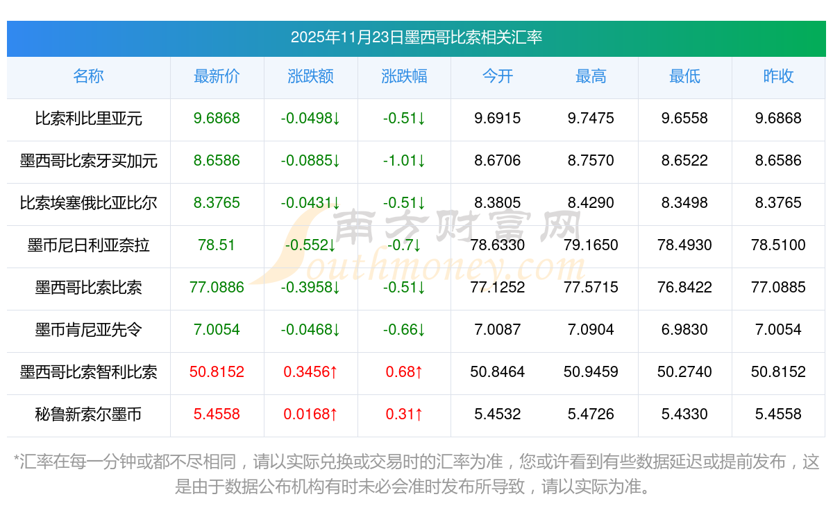 2025年11月23日墨西哥比索相關(guān)匯率查詢