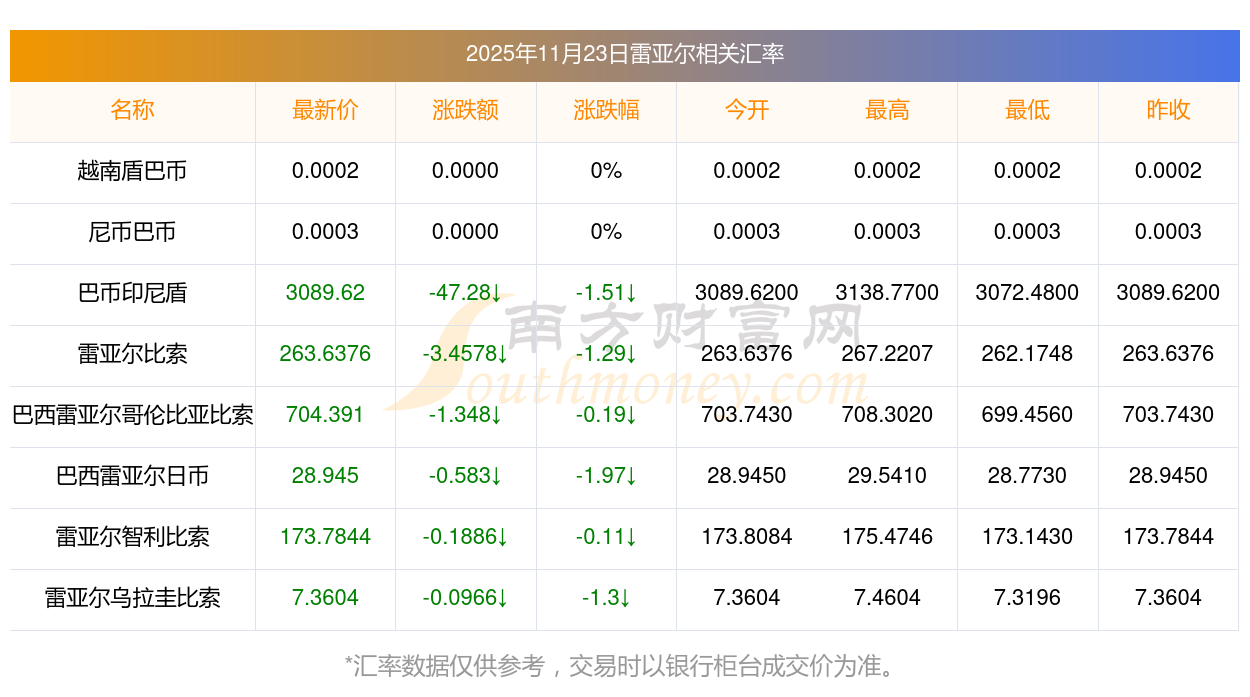 2025年11月23日雷亞爾相關(guān)匯率查詢