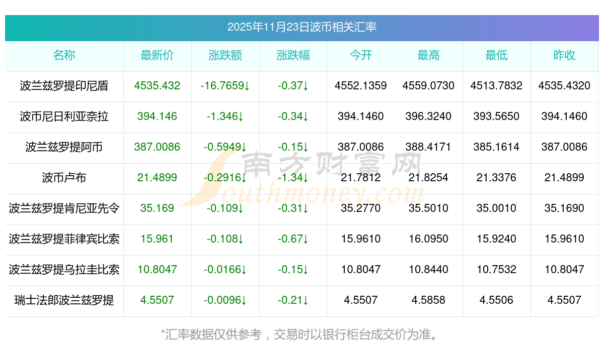 2025年11月23日波幣相關(guān)匯率查詢