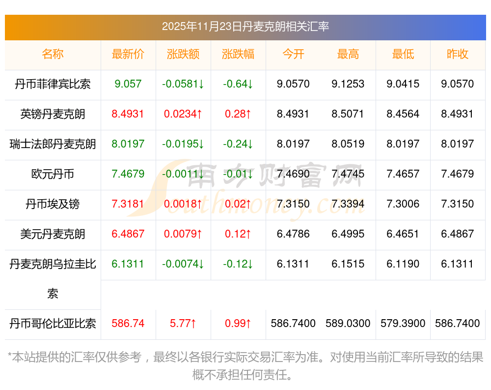 2025年11月23日丹麥克朗相關(guān)匯率查詢