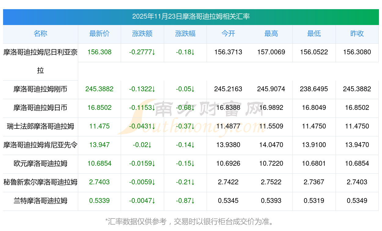 摩洛哥迪拉姆外匯行情 今日摩洛哥迪拉姆對澳幣匯率查詢2025/11/23