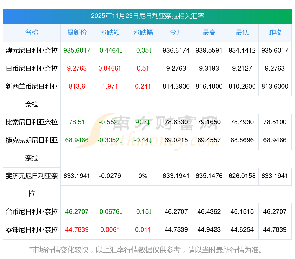 2025年11月23日尼日利亞奈拉相關匯率查詢