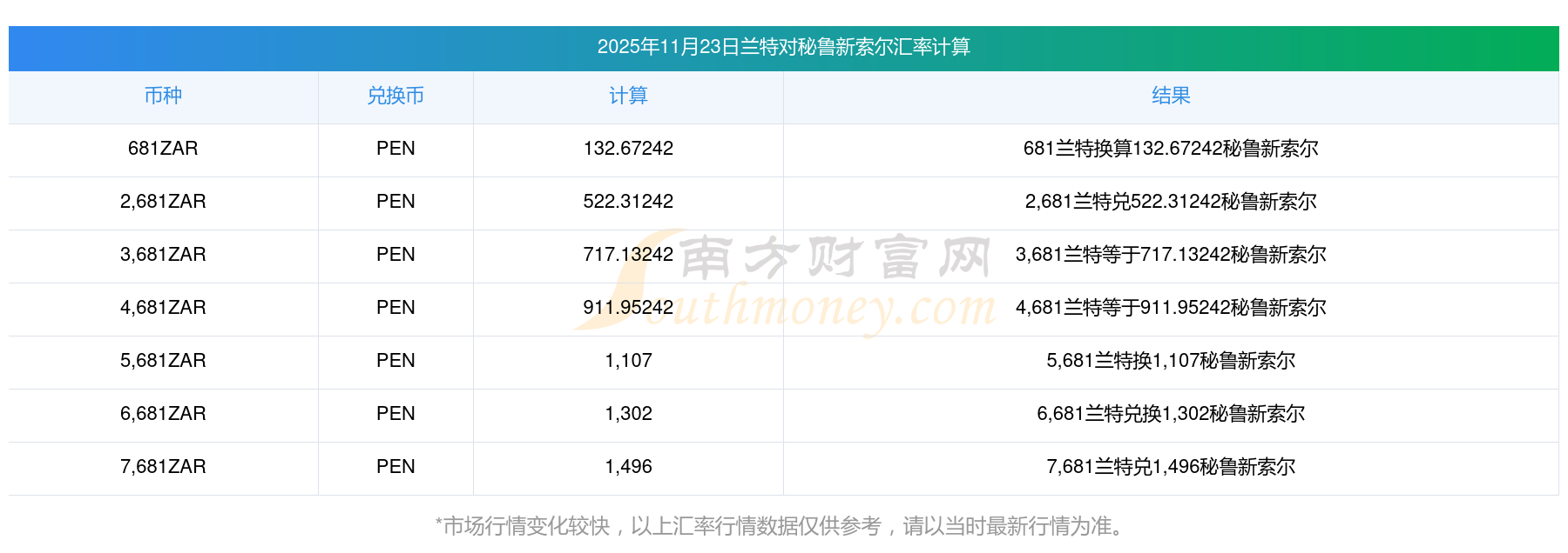 南方財(cái)富網(wǎng)為您提供蘭特對(duì)秘魯新索爾匯率最新價(jià)格詳情。