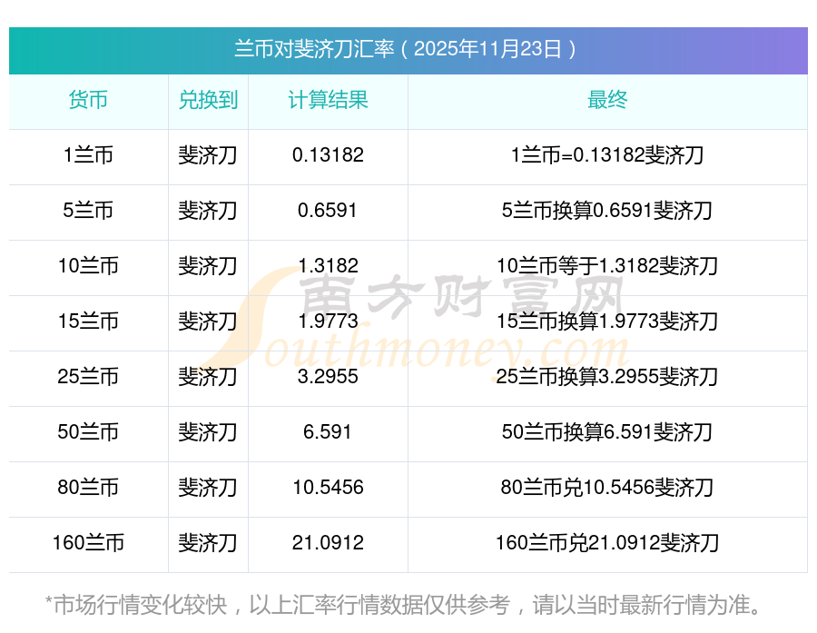 2025年11月23日蘭幣兌換斐濟(jì)刀匯率是:0.13182