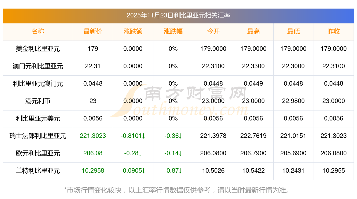 2025年11月23日利比里亞元相關(guān)匯率查詢
