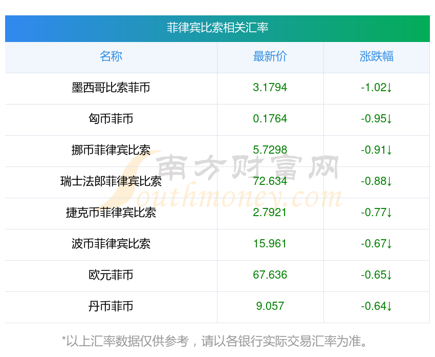 南方財富網為您提供菲律賓比索對智利比索匯率最新價格詳情。
