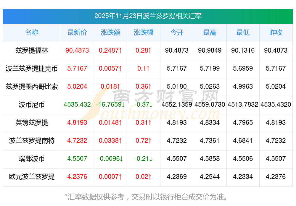 2025年11月23日波蘭茲羅提相關(guān)匯率查詢