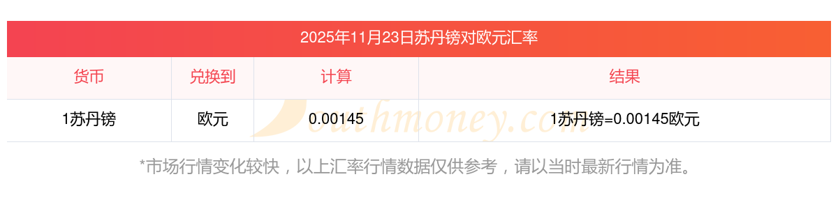 蘇丹鎊對歐元匯率計(jì)算2025年11月23日