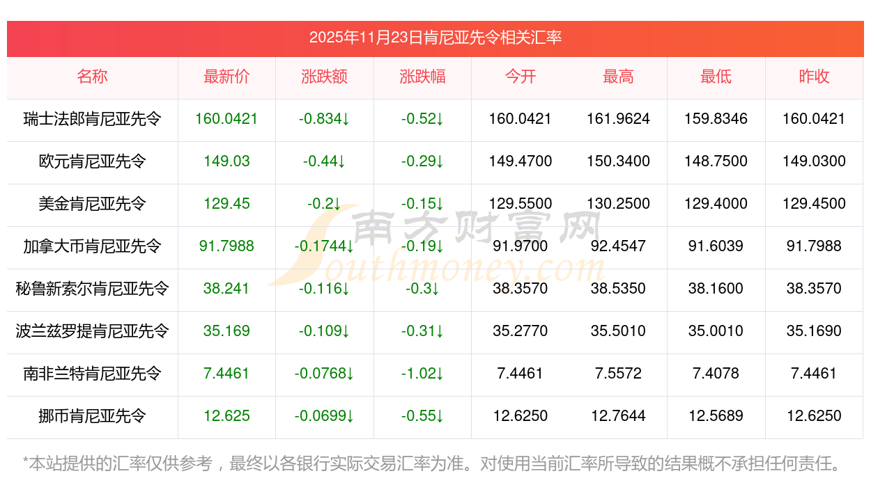 2025年11月23日肯尼亞先令相關(guān)匯率查詢