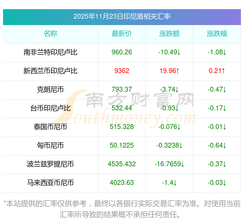 2025年11月23日印尼盾相關(guān)匯率查詢