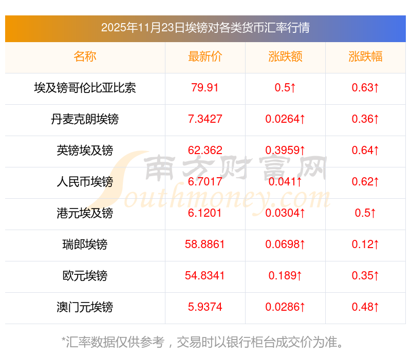 2025年11月23日埃鎊相關匯率查詢