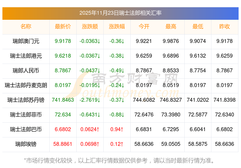 2025年11月23日瑞士法郎相關(guān)匯率查詢