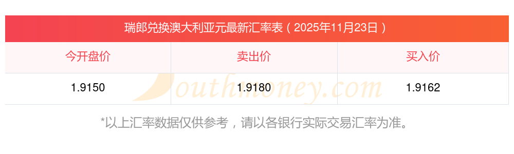2025年11月23日瑞郎與澳大利亞元的兌換匯率計算如下: