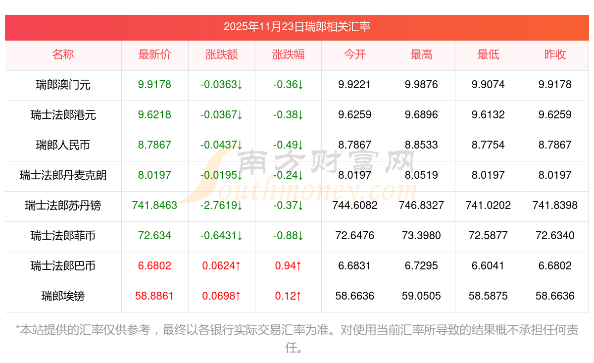 瑞郎對澳大利亞元匯率走勢,瑞郎對澳大利亞元今日匯率是多少?11月23日