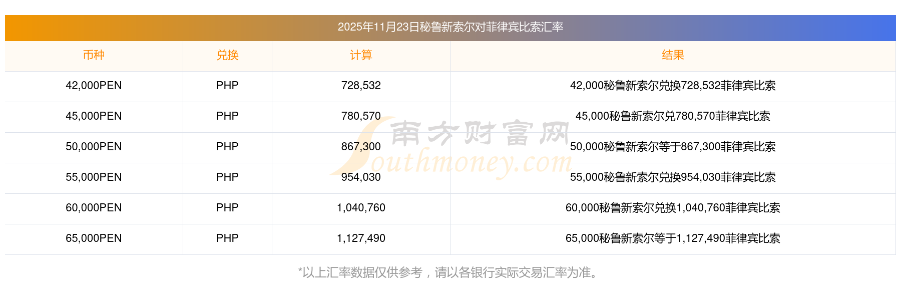 今日30秘魯新索爾兌換菲律賓比索匯率查詢多少? 11-23