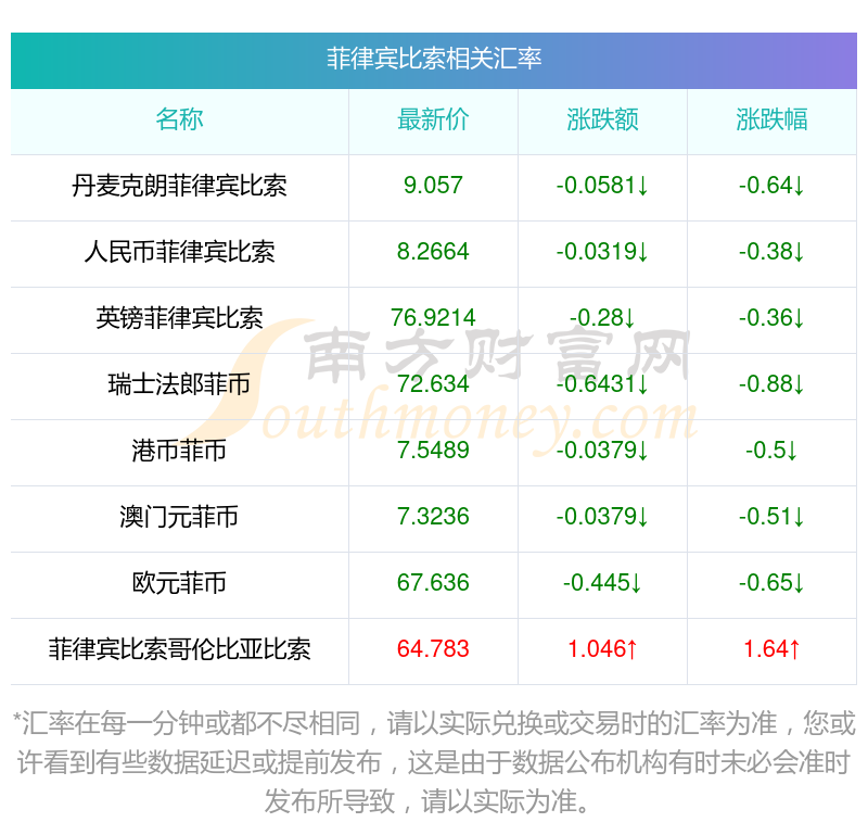 南方財富網(wǎng)為您提供菲律賓比索對埃鎊匯率最新價格詳情。