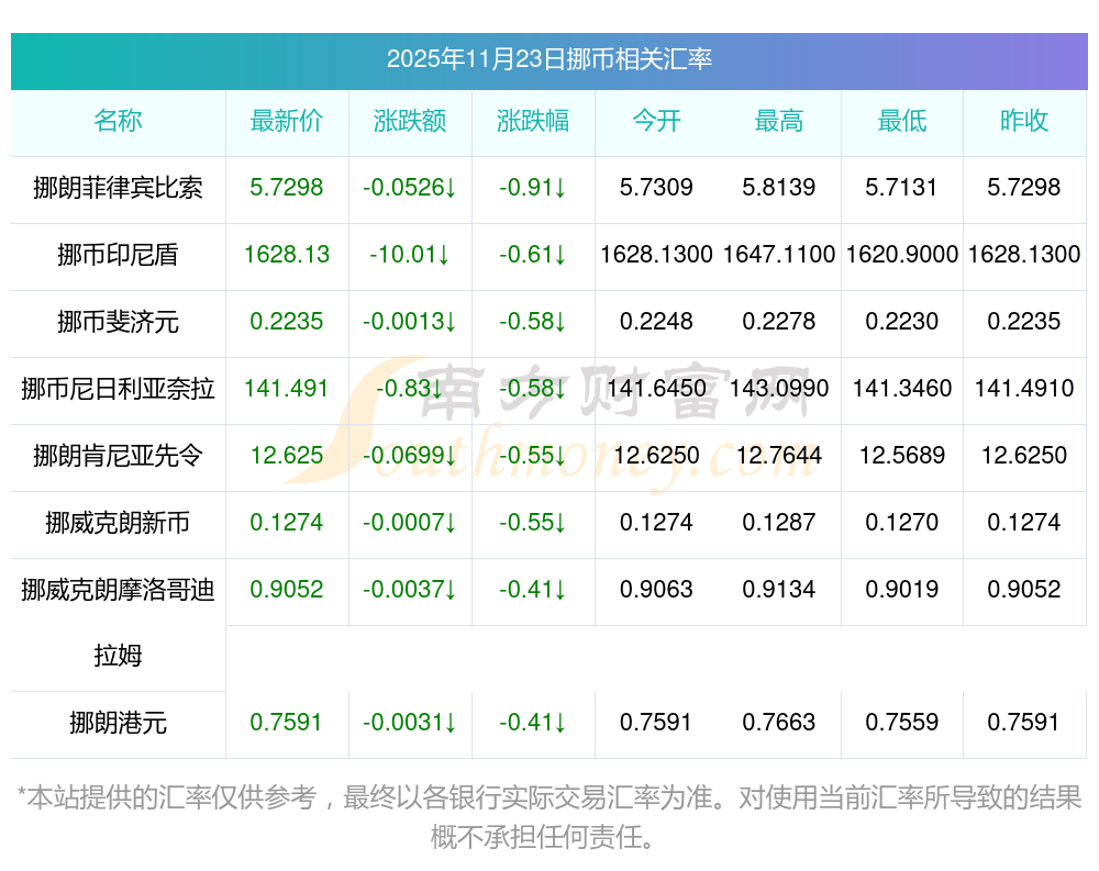 根據(jù)2025年11月23日匯率計(jì)算,NOK兌換NGN匯率最新價(jià)141.491000:今日開價(jià)141.6450,昨日收價(jià)141.4910,最高價(jià)143.0990,最低價(jià)141.3460。