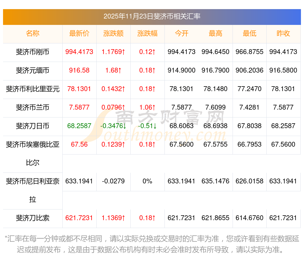 2025年11月23日斐濟(jì)幣相關(guān)匯率查詢
