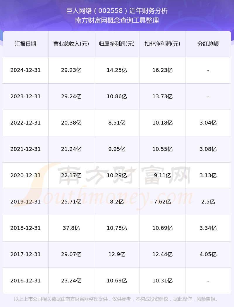 2024年報顯示,巨人網(wǎng)絡(luò)實現(xiàn)營收29.23億,同比增長-0.05%;凈利潤14.25億,同比增長31.15%;毛利率87.34%。