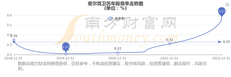 近年密爾克衛(wèi)年度股息率走勢如下圖: