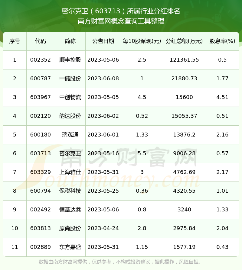 二、密爾克衛(wèi)603713行業(yè)分紅排名