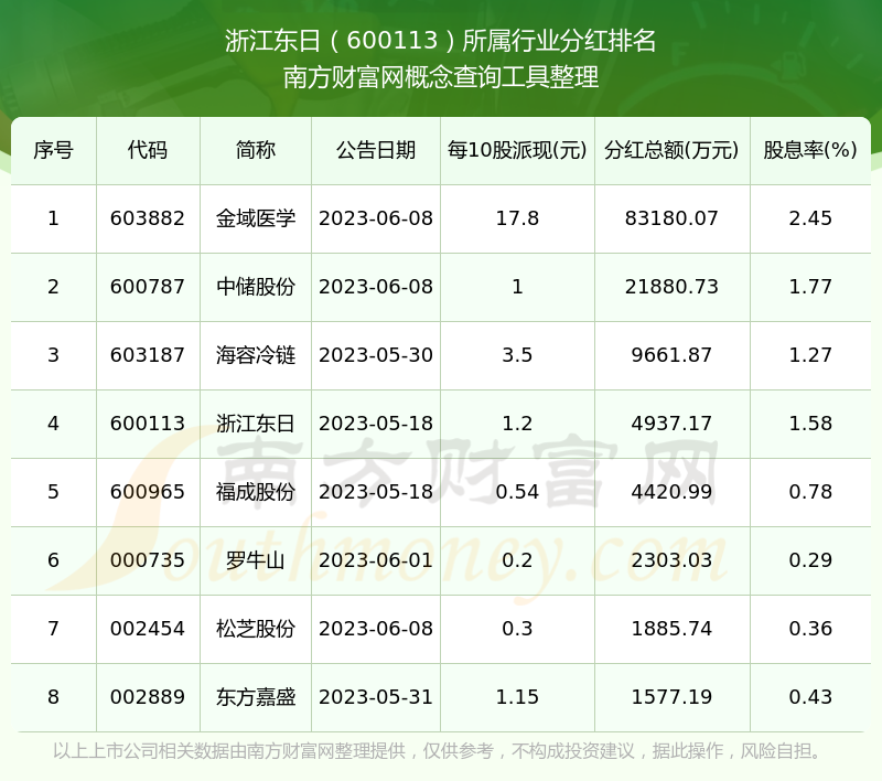 按照南方財(cái)富網(wǎng)趨勢選股系統(tǒng)統(tǒng)計(jì),浙江東日所屬行業(yè)為綜合行業(yè)行業(yè),綜合行業(yè)行業(yè)分紅排名情況如下表: