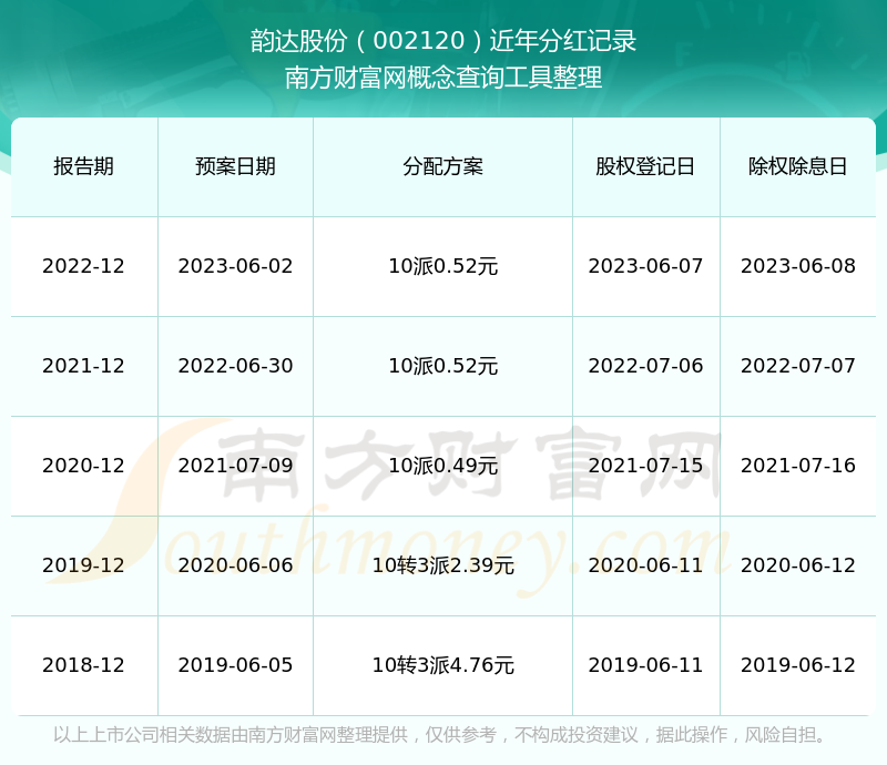 韻達股份最新一次公布的分紅方案:10派0.52元。