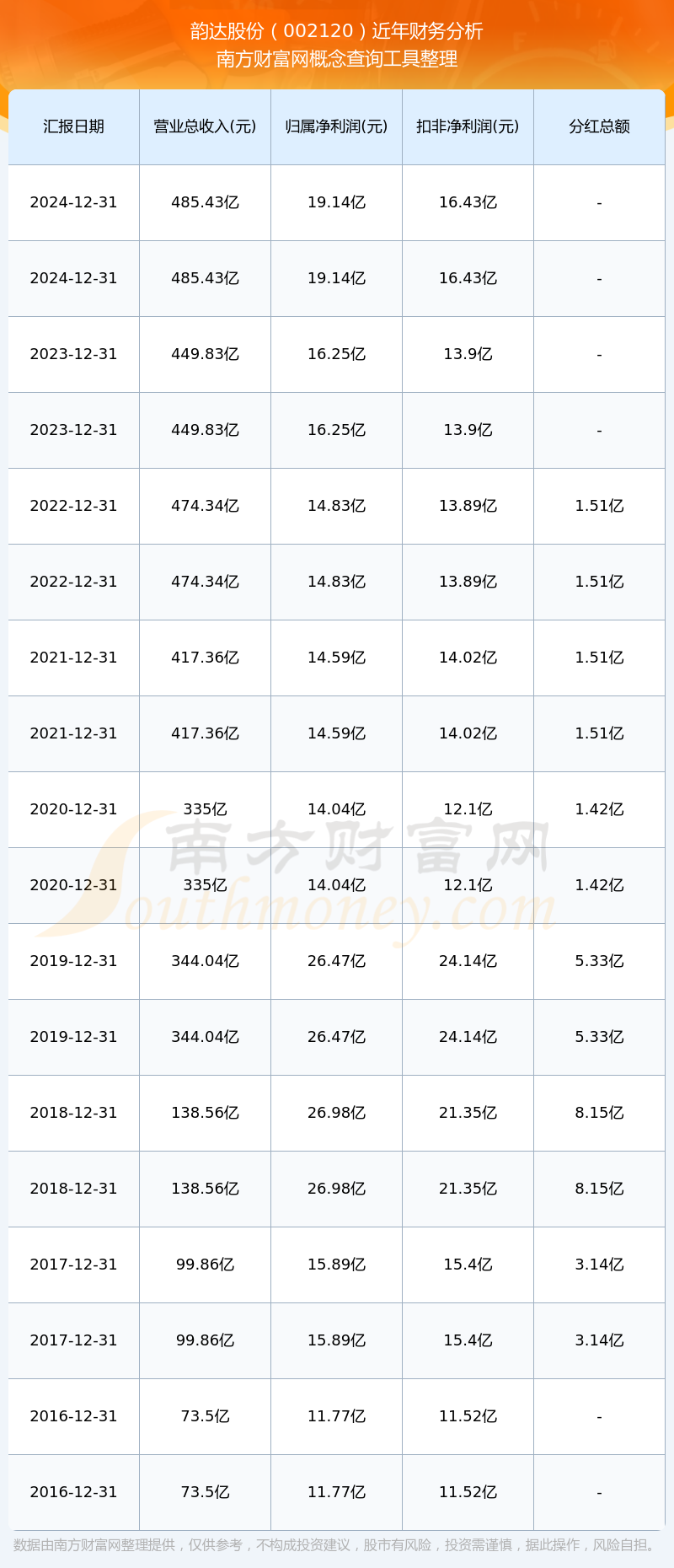 2024年韻達股份總營收485.43億,同比增長7.92%;凈利潤19.14億,同比增長17.77%;銷售毛利率9.49%。