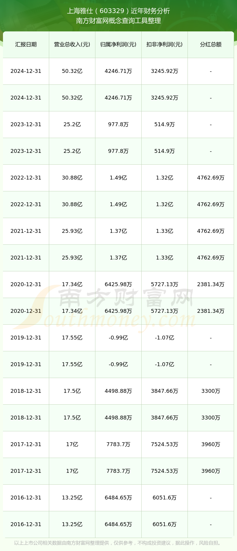 上海雅仕最新一次公布的分紅方案:10派3元。