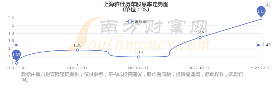 上海雅仕歷年股息率走勢(shì)如下圖: