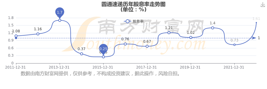 圓通速遞歷年股息率走勢(shì)如下圖: