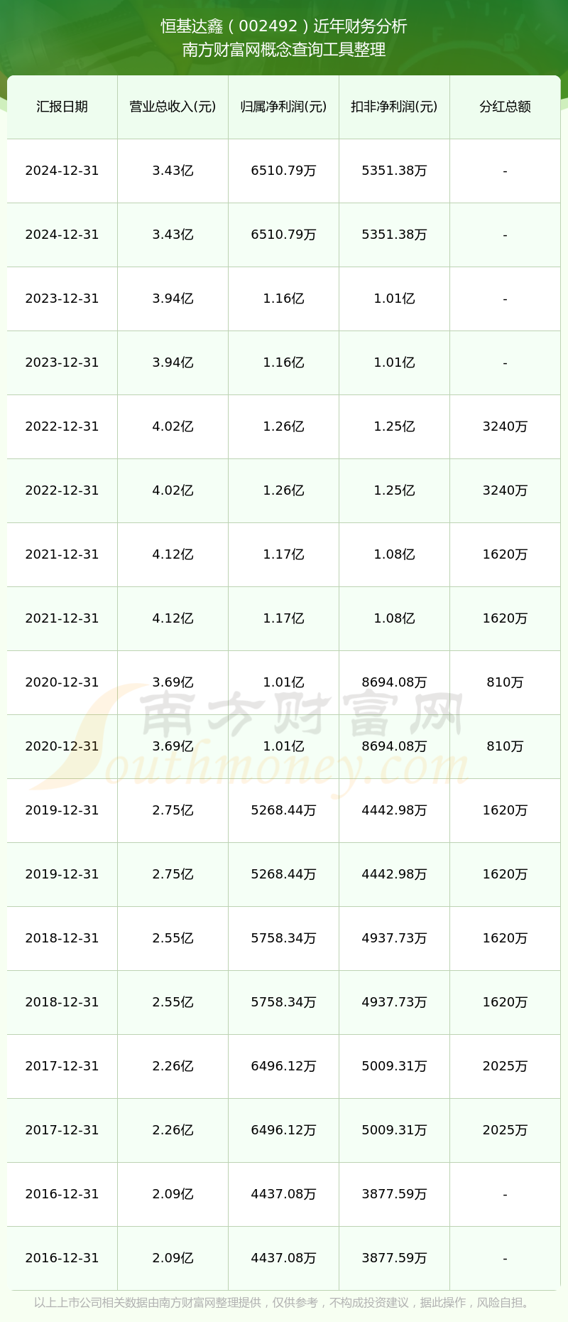 恒基達鑫2024年總營收3.43億,同比增長-12.87%;凈利潤6510.79萬,同比增長-43.66%;銷售毛利率45.4%。