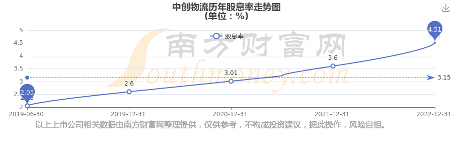 近年中創(chuàng)物流年度股息率走勢(shì)如下圖: