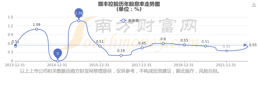 近年順豐控股年度股息率走勢(shì)如下圖: