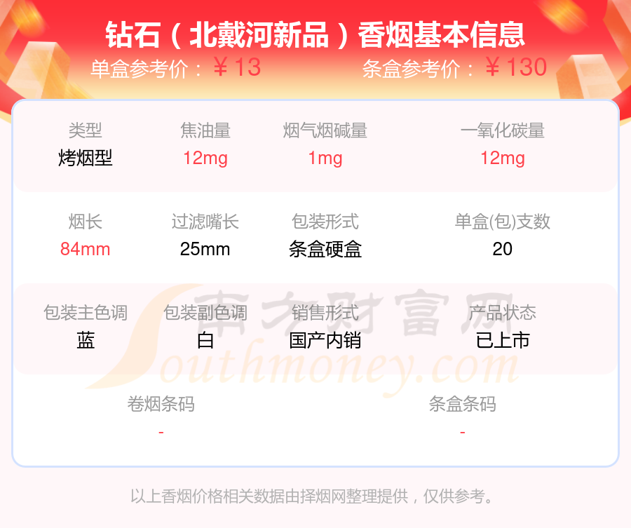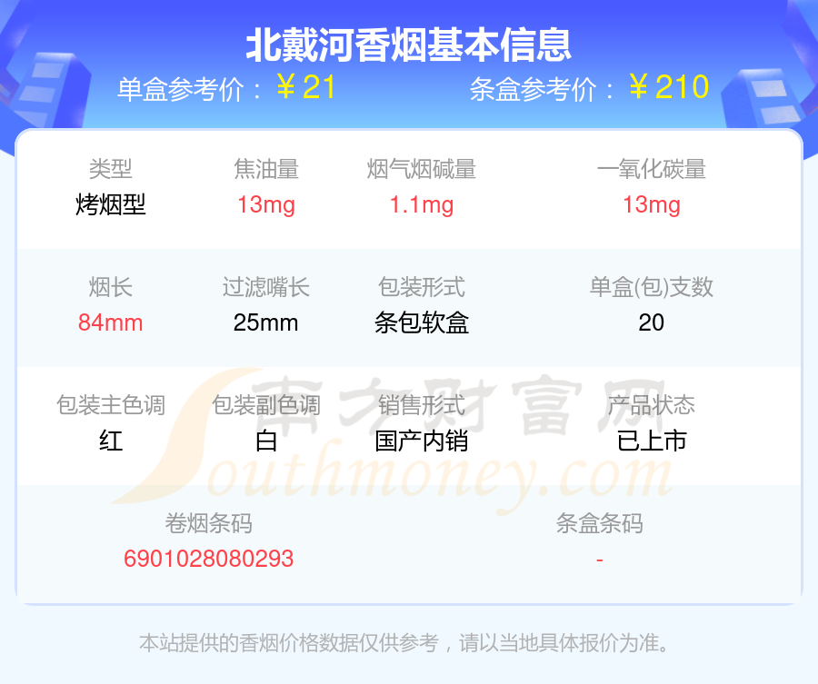 擇煙網(wǎng)為大家盤點了北戴河香煙10~40元左右的,分別有北戴河、鉆石(北戴河新品)、鉆石(北戴河新)、鉆石(新北戴河)等,具體價格如下: